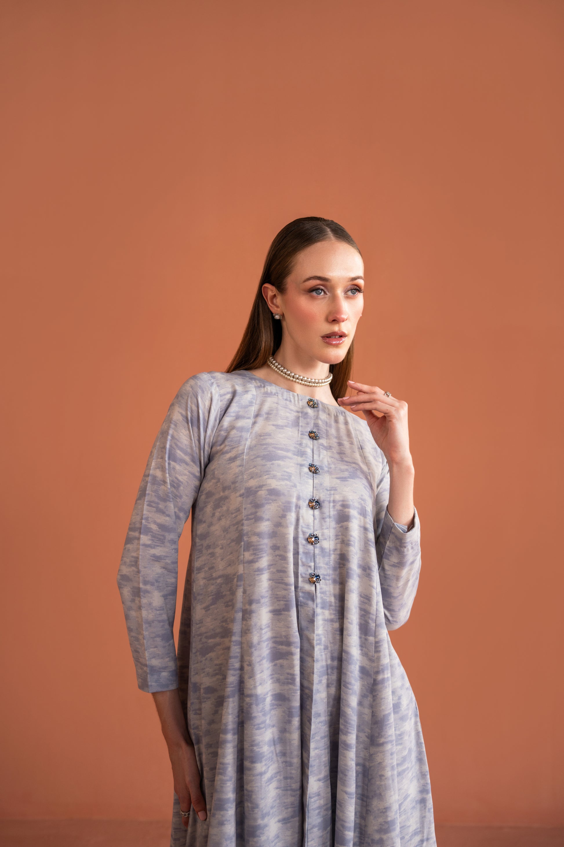 Central Front Slit Frock With Embellished Buttons And Capri 2pc