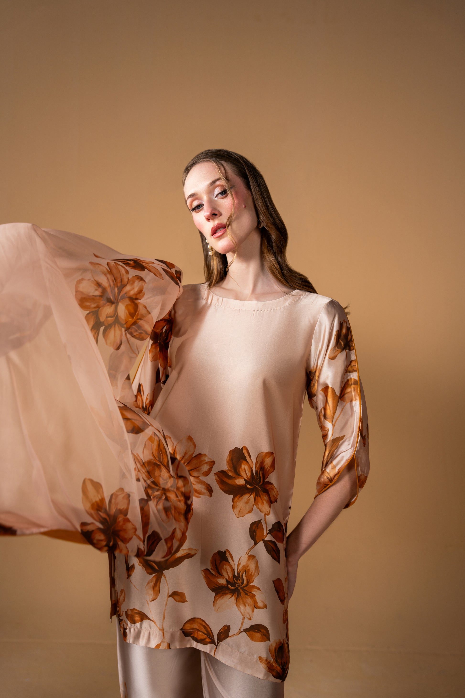 Perfectly paired with flowing bell-bottom trousers, it creates a