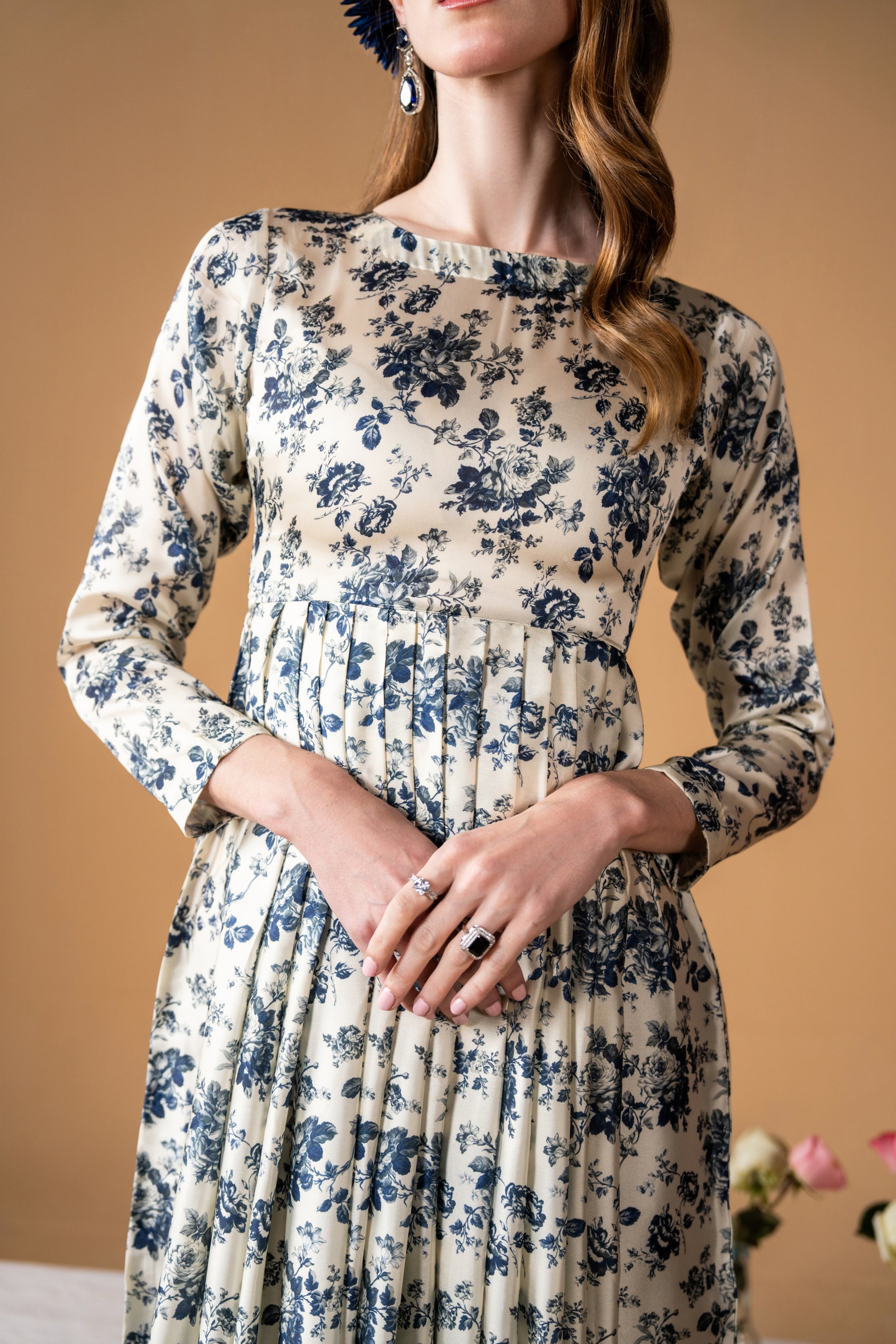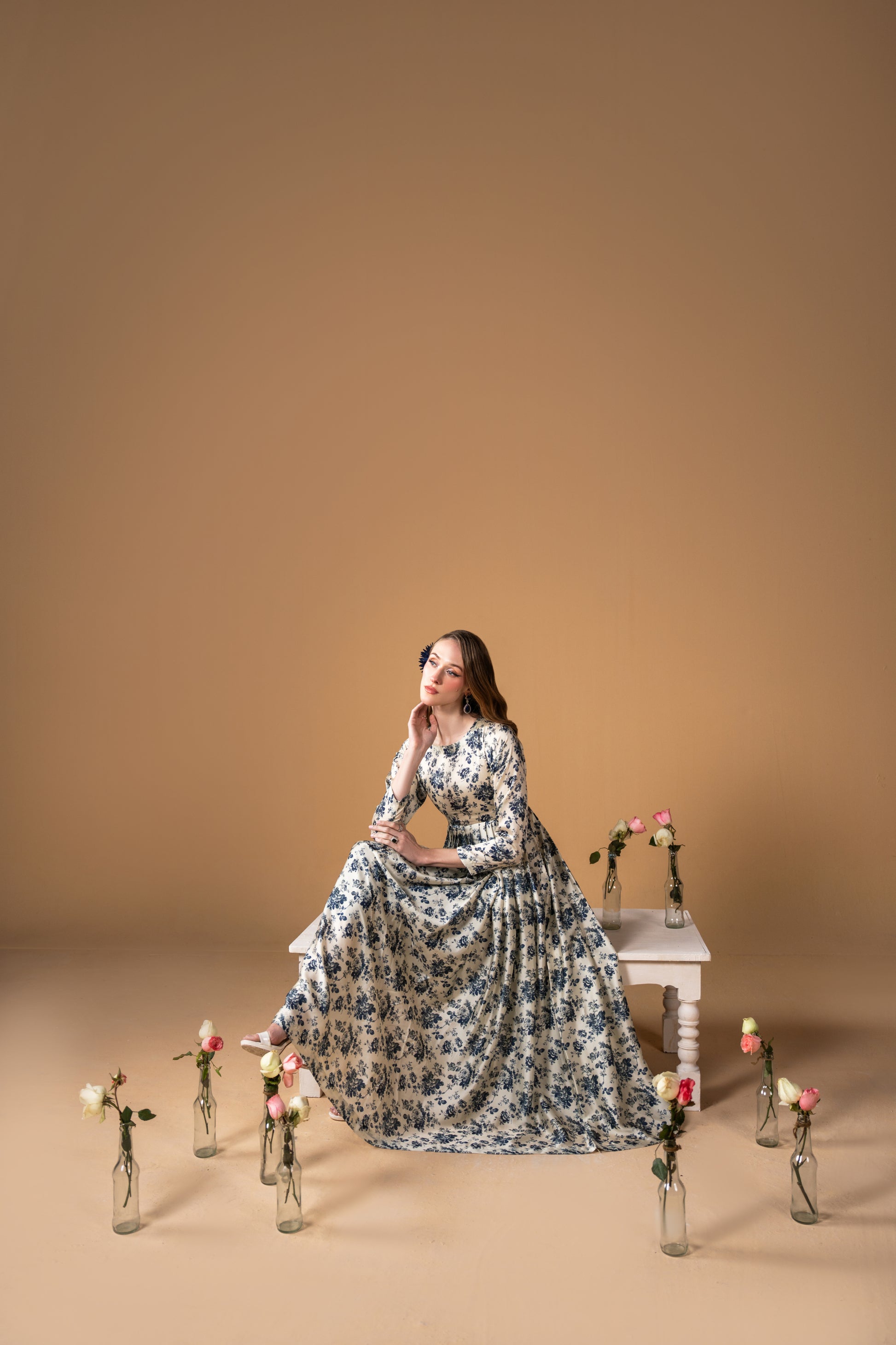 Indulge in graceful elegance with this ankle-length frock, distinguished by a